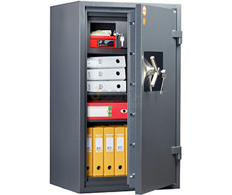 Сейф VALBERG ГАРАНТ ЕВРО 120Т №34577 - вес: 350 кг, цвет: графит структурированный, высота (внешняя): 120 см, ширина (внешняя): 70 см, глубина (внешняя): 58 см, высота (внутренняя): 110 см, ширина (внутренняя): 53 см, глубина (внутренняя): 39 см, количество полок: 2, устойчивость к взлому: 2, тип замка: ключевой, тип покрытия: грунт-эмаль, страна-производитель: россия, гарантия: 5, гарантия на замок: 5, защита замка от высверливания, толщина защитного слоя двери: 33 мм, толщина боковых стенок: 77 мм, анкерные болты в комплекте, 3-х сторонняя ригельная система запирания, размеры трейзера (вхшхг): 20х48х33 см, система блокировки ригельного механизма при выбивании замка, класс огнестойкости: 60б, тепловой замок, защита замка от выбивания.