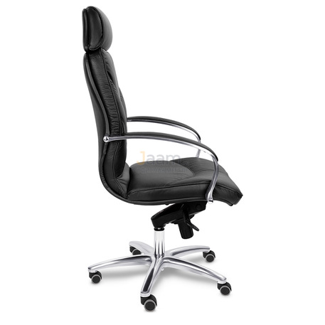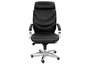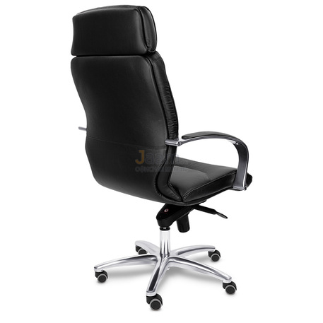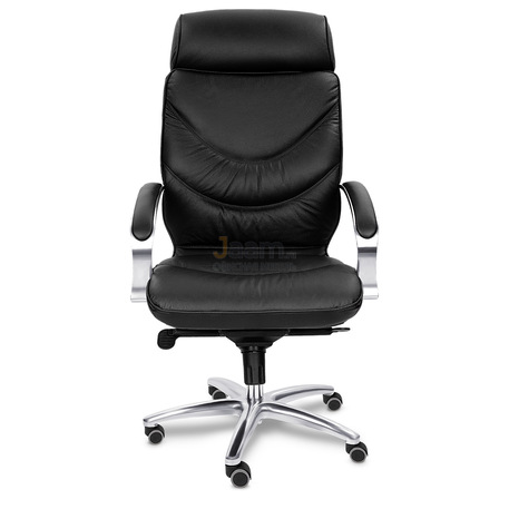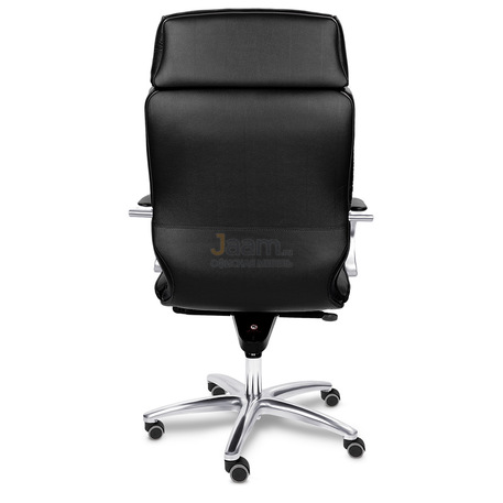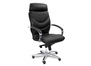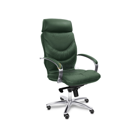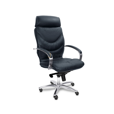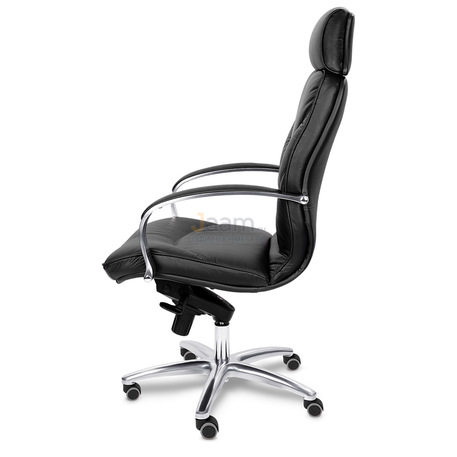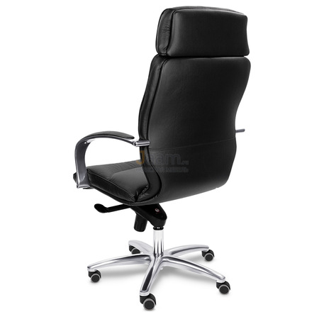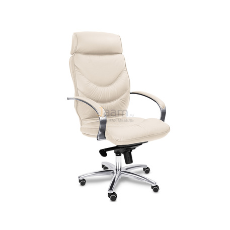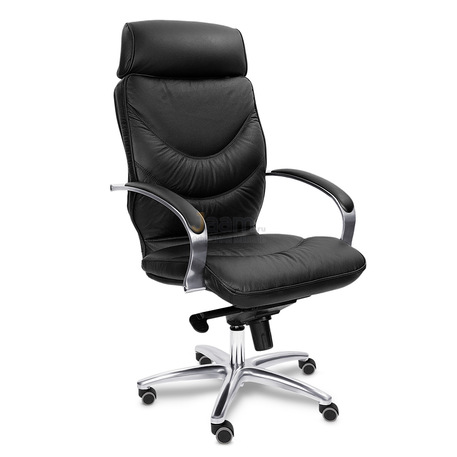 Кресло для руководителя LEEDS CHROME A кожа+кож.зам. №38308 - высота спинки: 74 см, высота от пола до сиденья: 50-57 см, диаметр крестовины: 72 см, ширина спинки: 53 см, объем: 0,37 м3, вес: 25 кг, механизм качания без фиксации, регулировка жесткости качания по весу сидящего, ограничения по весу: 150 кг, основание: металл, каркас: немонолитный, подголовник, подлокотники, поясничный упор, регулировка по высоте, резиновые колеса для паркета, в наличии в Энгельсе.